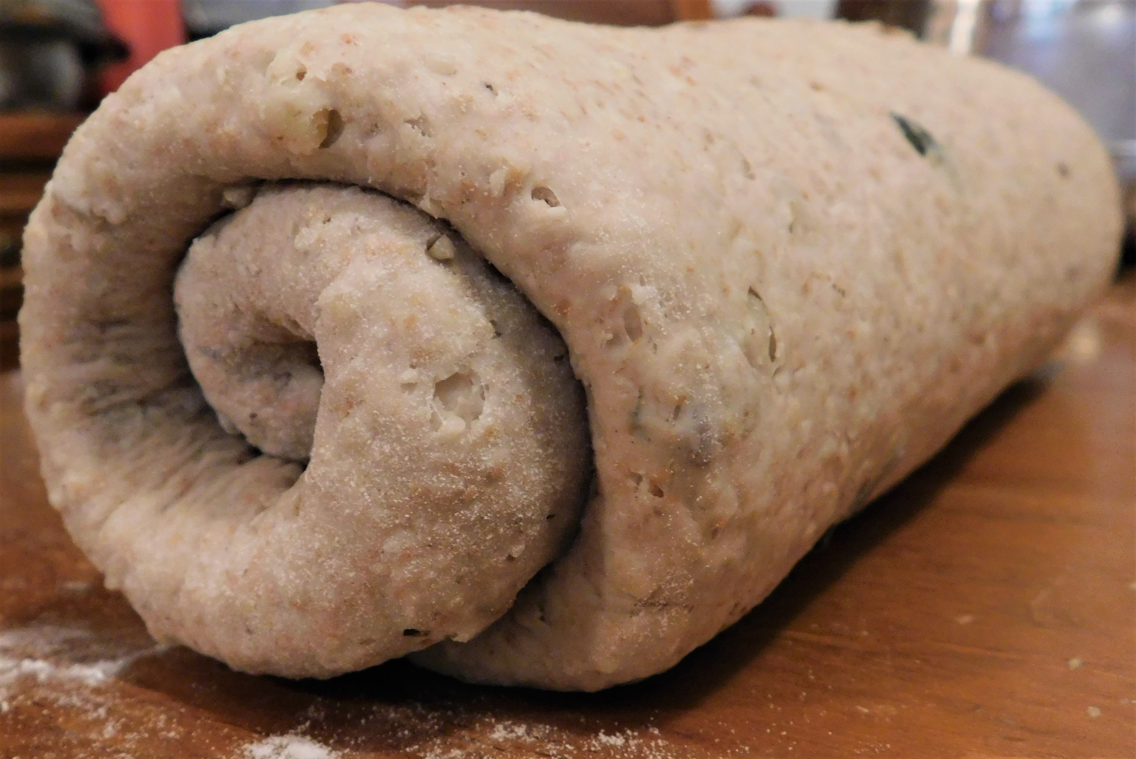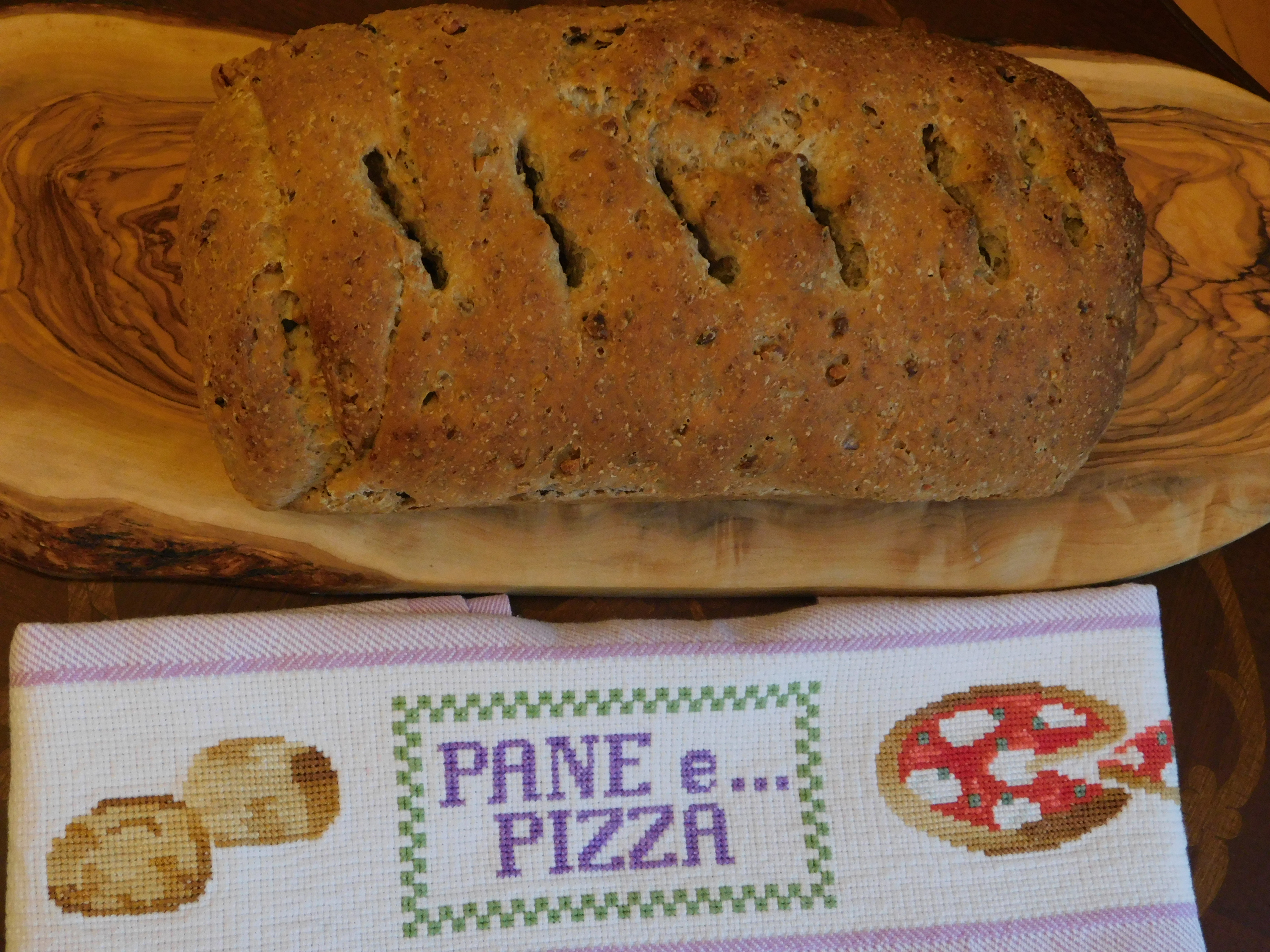 Ora si può dare al pane la forma desiderata, in questo caso, io l’ho arrotolato su se stesso e messo a lievitare in una teglia rettangolare (da plumcake), nuovamente in un luogo caldo coperto da un canovaccio (in questo caso non uso più la pellicola). Dopo circa un’ora di lievitazione il pane sarà pronto per la cottura in forno ventilato a 190° C per 40/45 minuti. I tempi di cottura variano a seconda delle dimensioni del pane, consiglio di controllare dopo 30 minuti. La crosta dovrà risultare dorata e croccante. Prima di servire lasciare raffreddare il pane coperto da un canovaccio pulito leggermente inumidito.