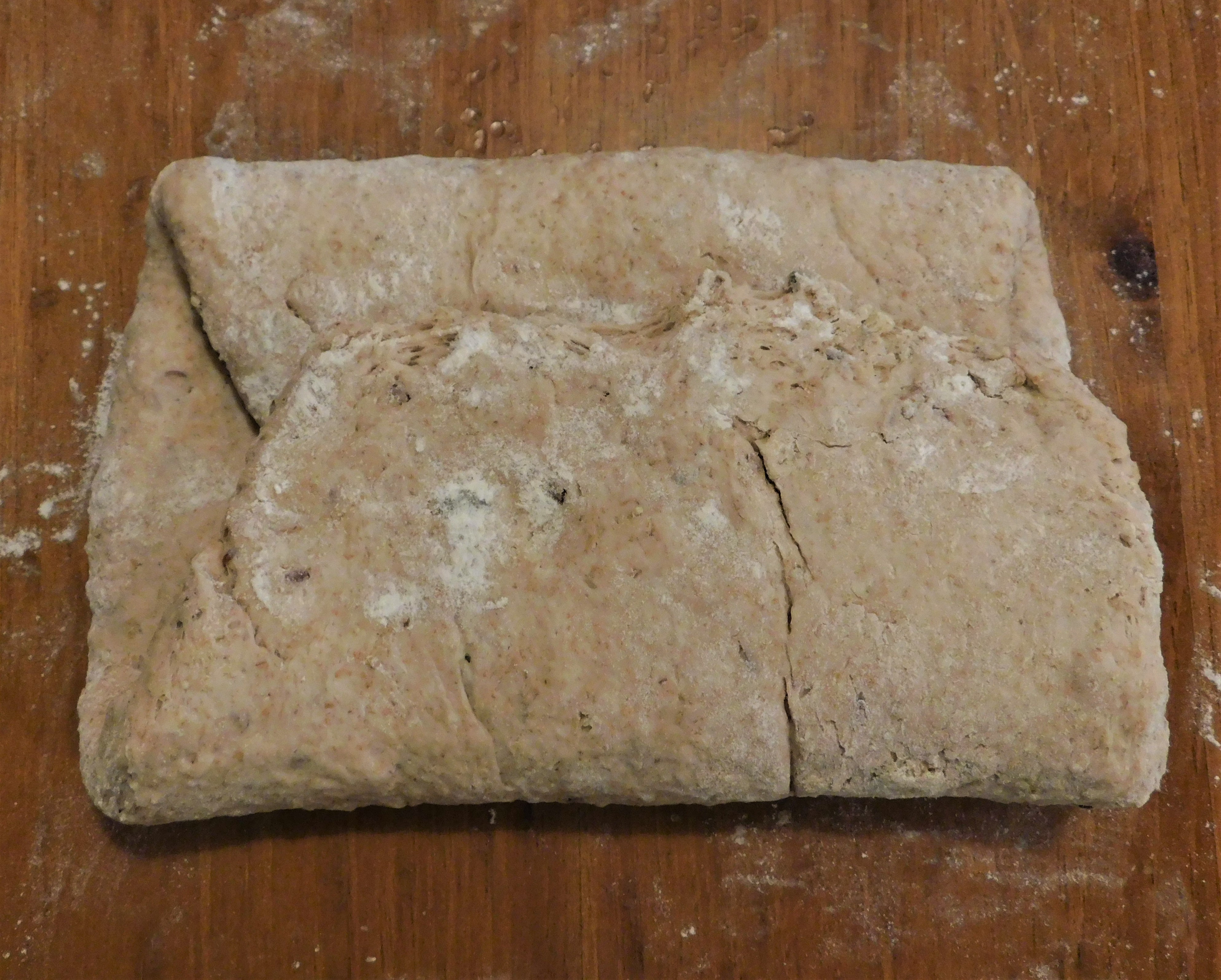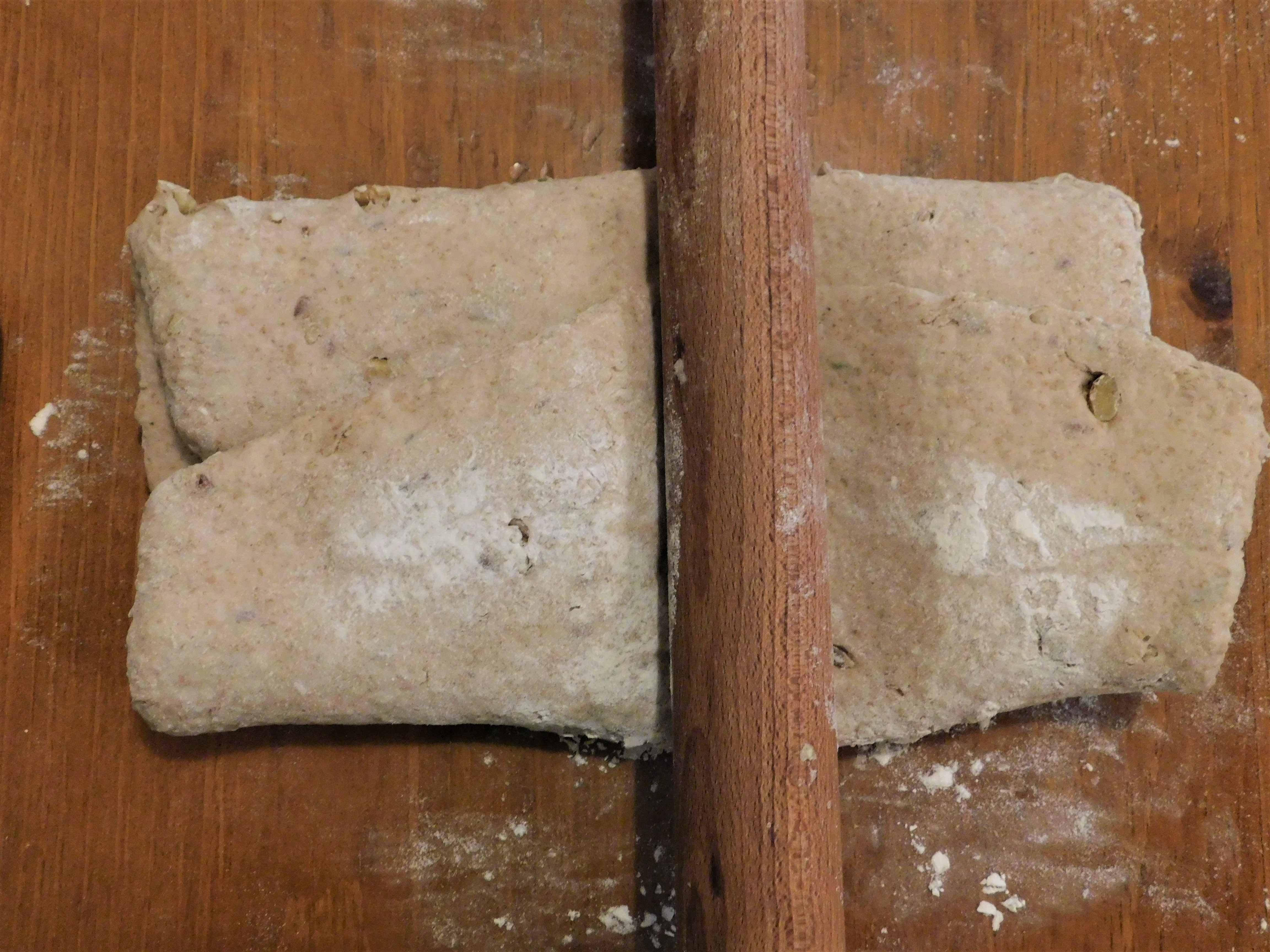 Mescolare con l’impastatrice (o a mano) le farine amalgamandole bene. Unire il lievito, lo zucchero e mescolare. Aggiungere la frutta secca tagliata grossolanamente a coltello, i fiocchi d’avena, i semi, e l’olio. Trasferire nell’impastatrice e con il gancio a spirale cominciare ad impastare unendo a poco a poco l’acqua, fino a che si sarà formata una massa amalgamata. A questo punto unire anche il sale. Aumentare la velocità e lasciare lavorare l’impastatrice finché si sarà “incordato” l’impasto al gancio. Ci vorranno alcuni minuti, il tutto dipenderà dalla velocità azionata. Qualora l’impasto non si staccasse bene dalle pareti, perché troppo umido, aggiungere poca farina per consentirne la lavorazione. Trasferire in una ciotola pulita coprendo con pellicola ,o canovaccio, e lasciare lievitare in un luogo caldo per almeno 2 ore, o comunque fino al raddoppio del volume iniziale. Trascorso questo tempo, trasferire l’impasto sulla spianatoia e procedere con le pieghe.