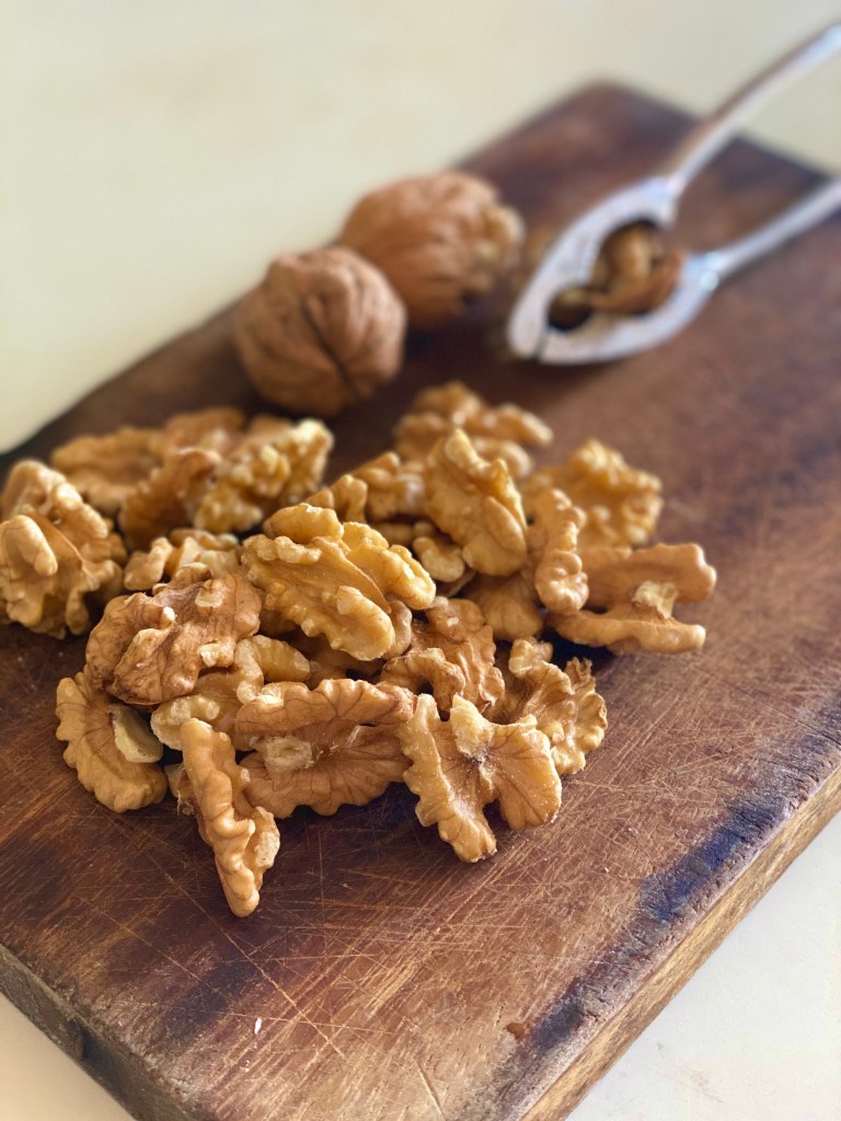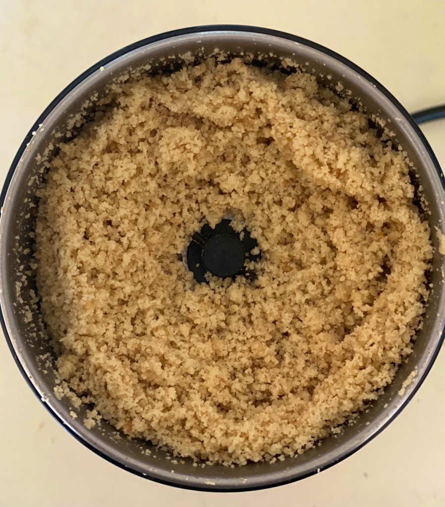 Tritare le noci molto finemente, aggiungere poi tutti gli altri ingredienti e mescolare velocemente, fino ad ottenere un’impasto compatto. Avvolgerlo nella pellicola e far riposare in frigorifero per almeno 1 ora.