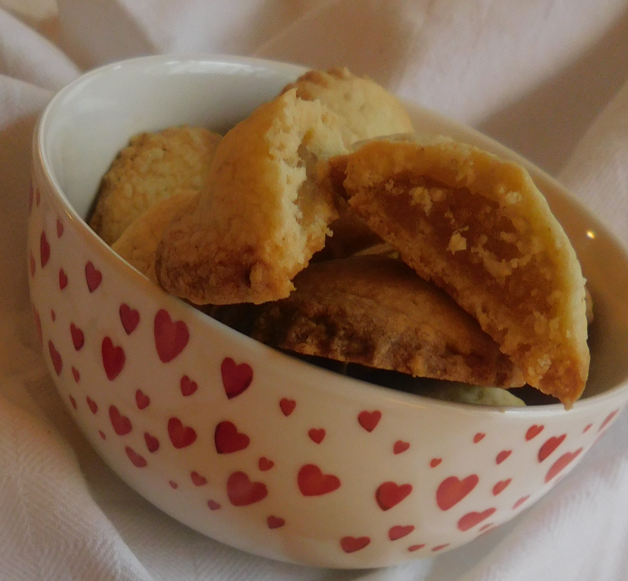 Mentre scattavo le foto, i miei figli urlanti non riuscivano ad aspettare nemmeno il tempo di uno scatto per assaggiare questi biscottini! D’altronde il profumo di mele, cannella e pasta frolla che si era sparso per casa era difficile da ignorare!