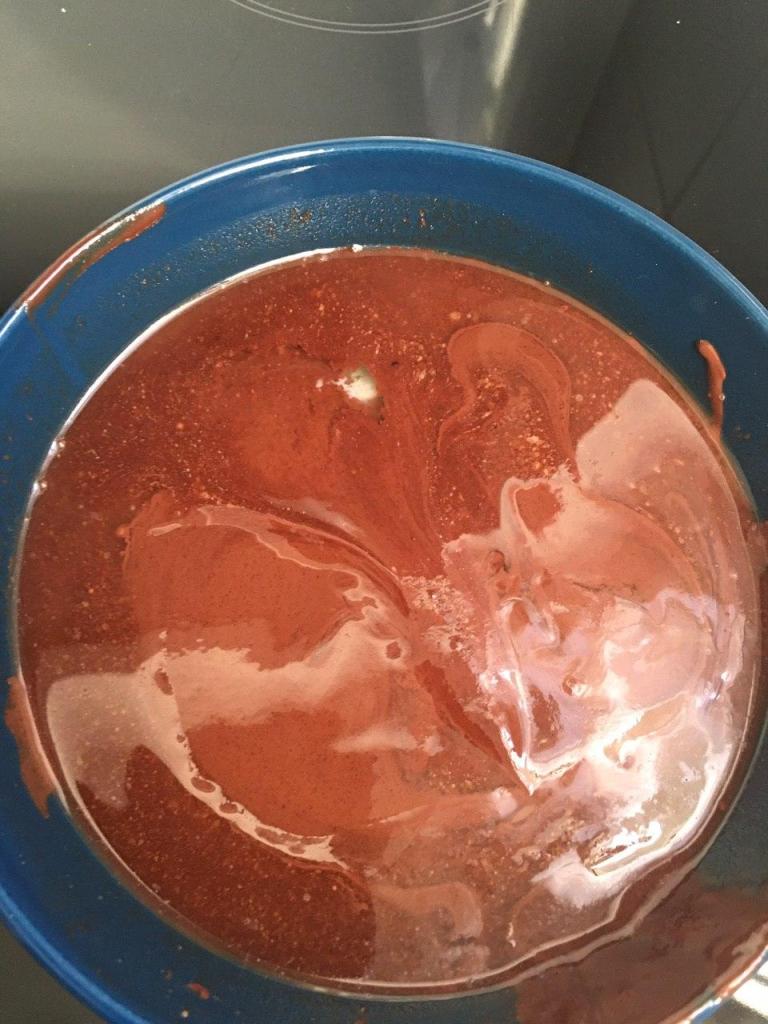 Prima di tutto sciogliamo a bagnomaria il burro ed il cioccolato.