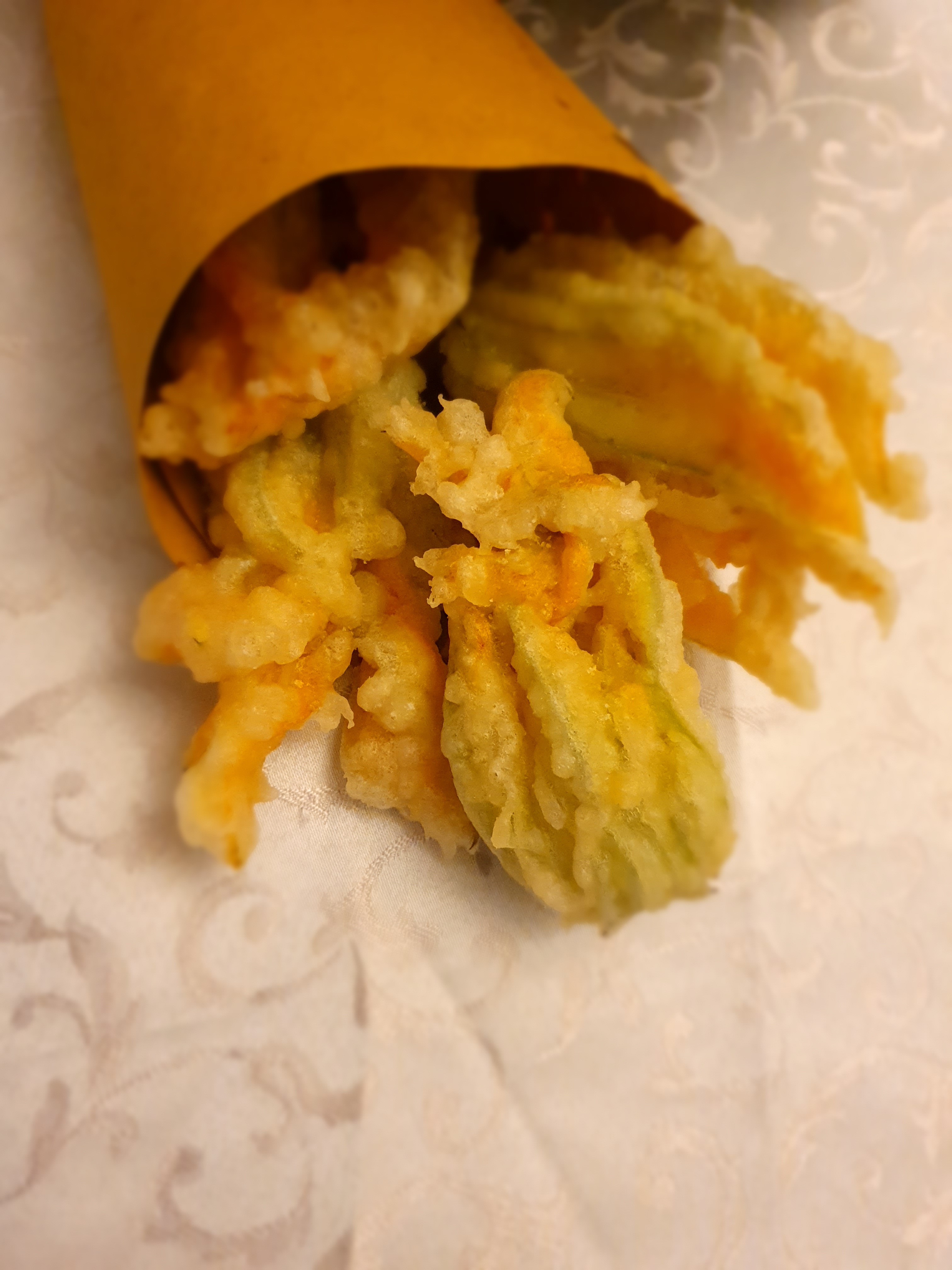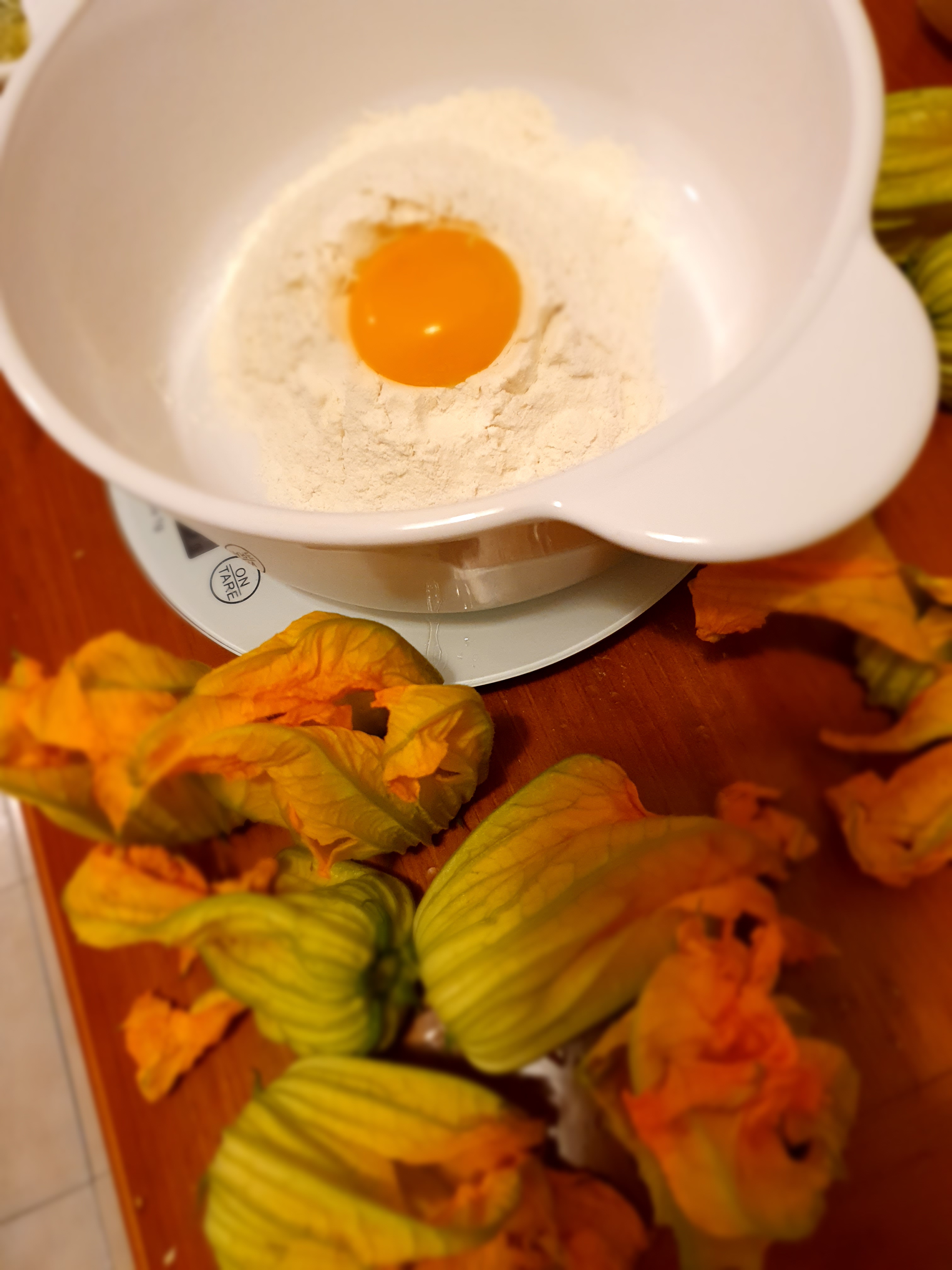 Non so voi, ma appena vedo i fiori di zucca dal fruttivendolo all’inizio della primavera, mi scaldano il cuore, come i primi raggi caldi di fine inverno. Per un occasione speciale li faccio fritti in pastella, e quest’ultima che vi propongo non copre per nulla il loro delicato sapore.