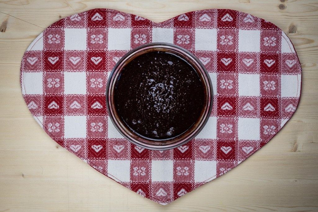 Sciogliere il cioccolato a bagnomaria e, una volta sciolto, aggiungere il burro. Mescolare fino a completo scioglimento del burro.