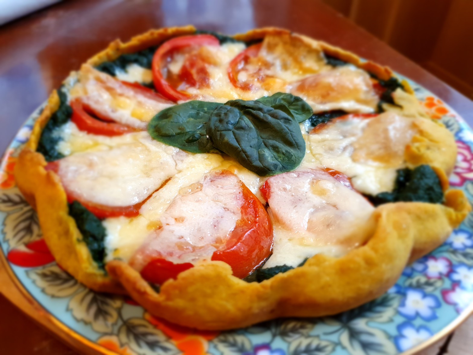 Torta salata spinaci freschi, pomodoro e mozzarella
